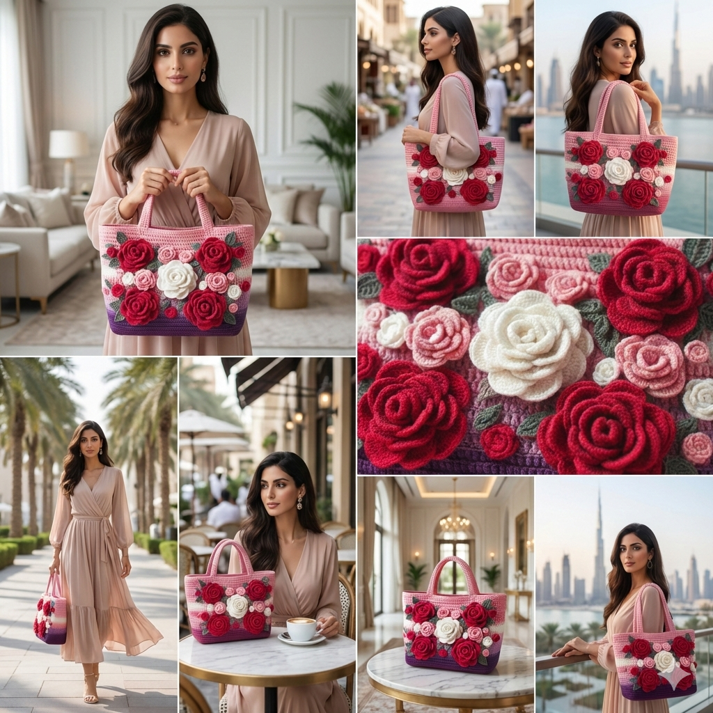 Carry a piece of art with you wherever you go! This stunning Hand Crocheted Rose Hand Bag is designed to turn heads and elevate your style ๐ธ. Featuring intricately hand-crocheted roses in vibrant shades of pink, red, and white, this bag is a perfect blend of elegance and craftsmanship.